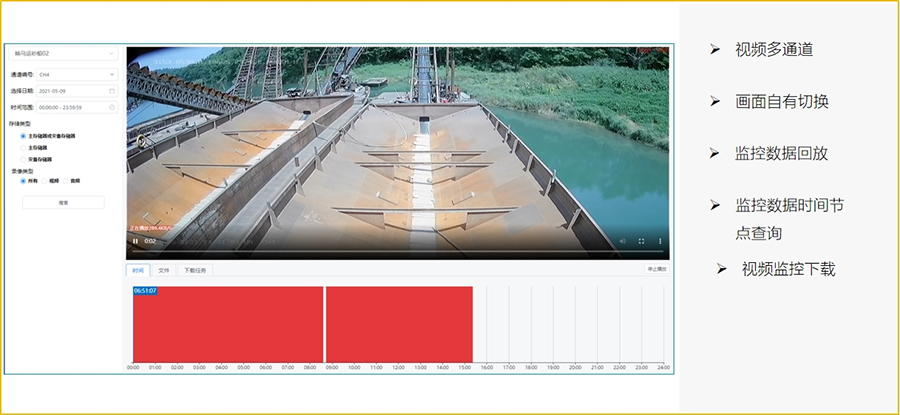 可调取每条船的视频录像,支持本地调取和远程调取,支持大屏上墙回放。